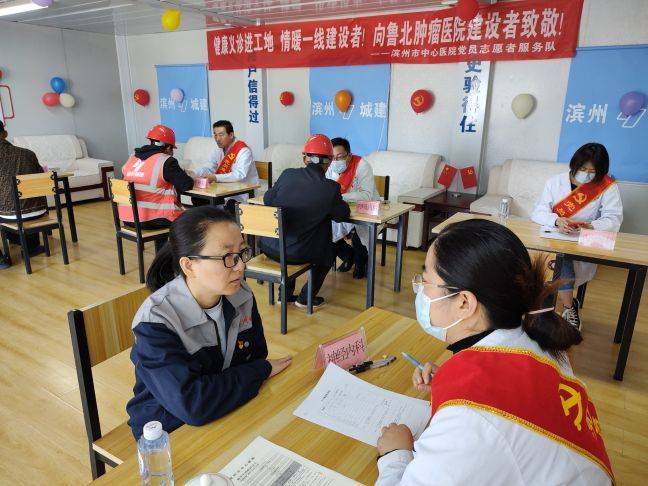 4月26日上午,魯北腫瘤醫院項目黨支部聯合濱州市中心醫院行管第三黨支部舉辦“健康義診進工地 情暖一線建設者”慶五一黨建共建活動。中心醫院由專家和醫務工作者組成的黨員志愿服務隊為100多名項目部一線管理人員和農民工們測量血糖、血壓、心電圖等,提供關節疼痛、外傷擦碰等常見病和多發病的咨詢問診,并根據檢查結果給出專業的治療意見,指導他們規范用藥、合理膳食等。體檢結束后,醫生們進行了健康知識培訓和急救知識普及。李冰表示,希望各位工友增強自我保健意識,確保身康體健,在各自的崗位上為項目建設創造更大價值。隨后,在李冰的帶領下,進行了項目參觀,中心醫院的醫務工作者們表示,在五一勞動節即將來臨之際,向魯北腫瘤醫院項目的建設者們致敬!