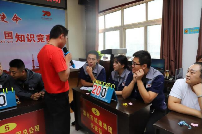 9月24日上午,濱州城建集團(tuán)參加了北鎮(zhèn)辦事處交運(yùn)社區(qū)舉辦的“不忘初心、牢記使命”慶祝新中國成立70周年學(xué)習(xí)強(qiáng)國知識(shí)競(jìng)賽。此次知識(shí)競(jìng)賽有8支代表隊(duì)參加,在競(jìng)賽中,參賽選手們聚精會(huì)神地聽題、信心百倍地答題,分工協(xié)作、沉著冷靜,認(rèn)真回答主持人的提問,既體現(xiàn)出個(gè)人魅力,又展現(xiàn)出了集體風(fēng)采。經(jīng)過激烈的個(gè)人賽、團(tuán)體賽、必答題、搶答題環(huán)節(jié),最終濱州城建集團(tuán)高路雨、任月月、陳延杰三名選手憑借良好的政治素質(zhì)和精神風(fēng)貌大比分勝出,獲得此次比賽的一等獎(jiǎng)。
